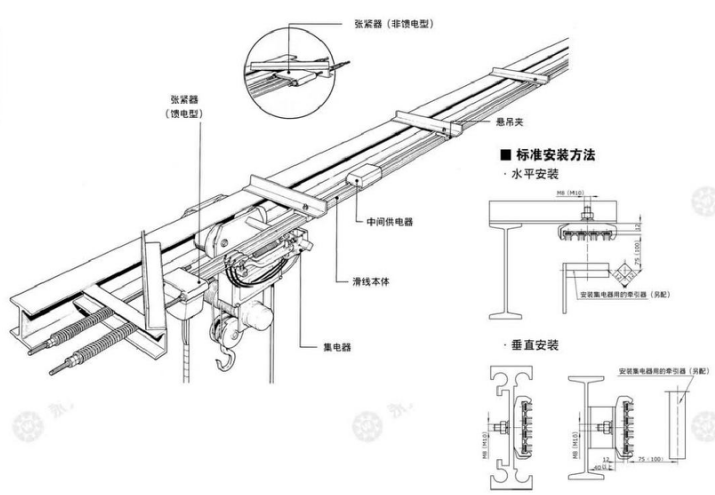 張緊型滑線就是在安裝時(shí),對(duì)滑線本體施加一定張緊力的一種移動(dòng)供電系統(tǒng)。其主要用于要求運(yùn)行速度快、運(yùn)行平穩(wěn)和噪音低的 場(chǎng)所如立體化倉庫。